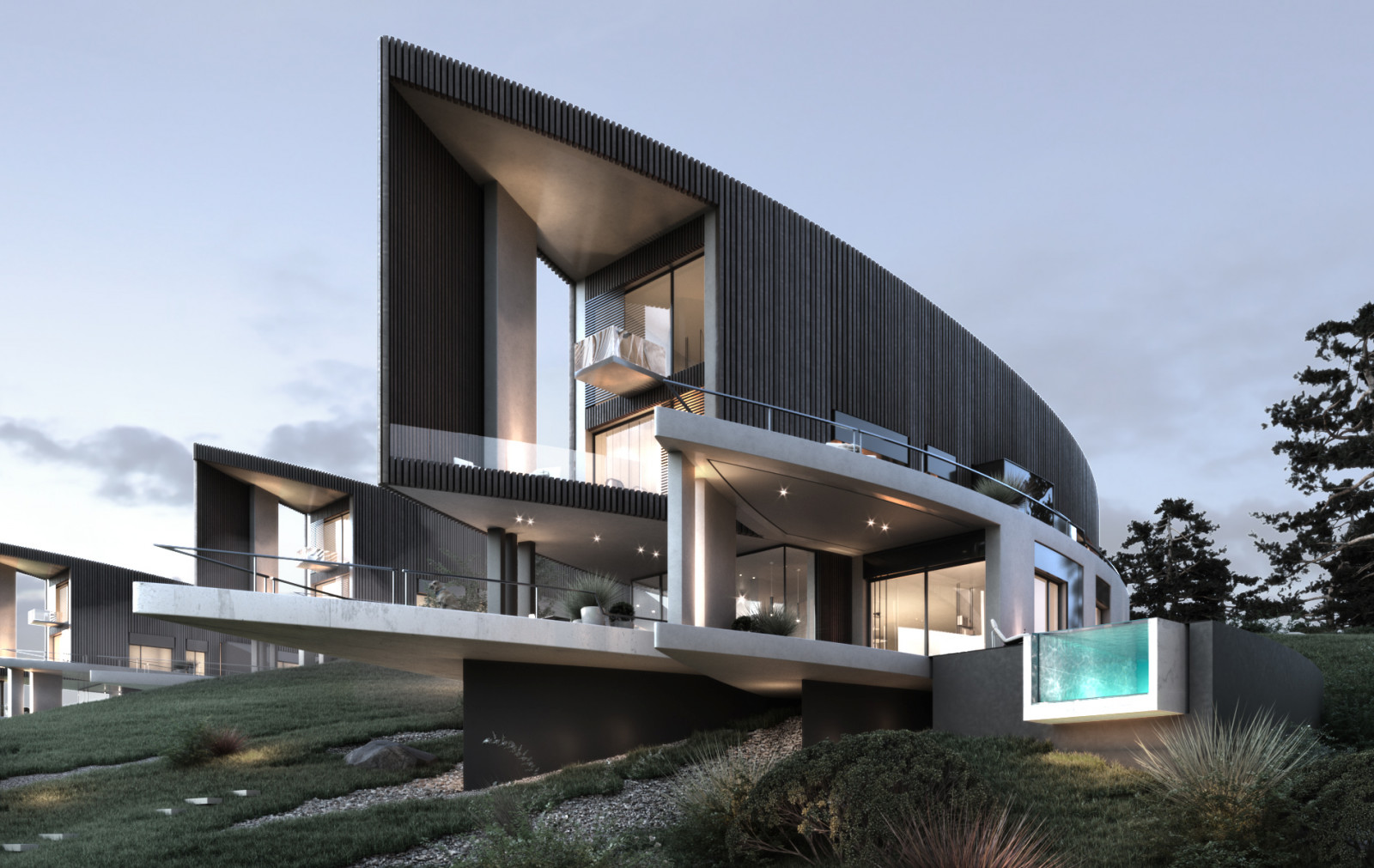 20 one-type cottages form a unique dynamic housing. The houses seem to grow out of the natural landscape. The airflow magnitude studies clearly demonstrate the benefits of The SEEDS architecture as a new dimension of comfort and safety.